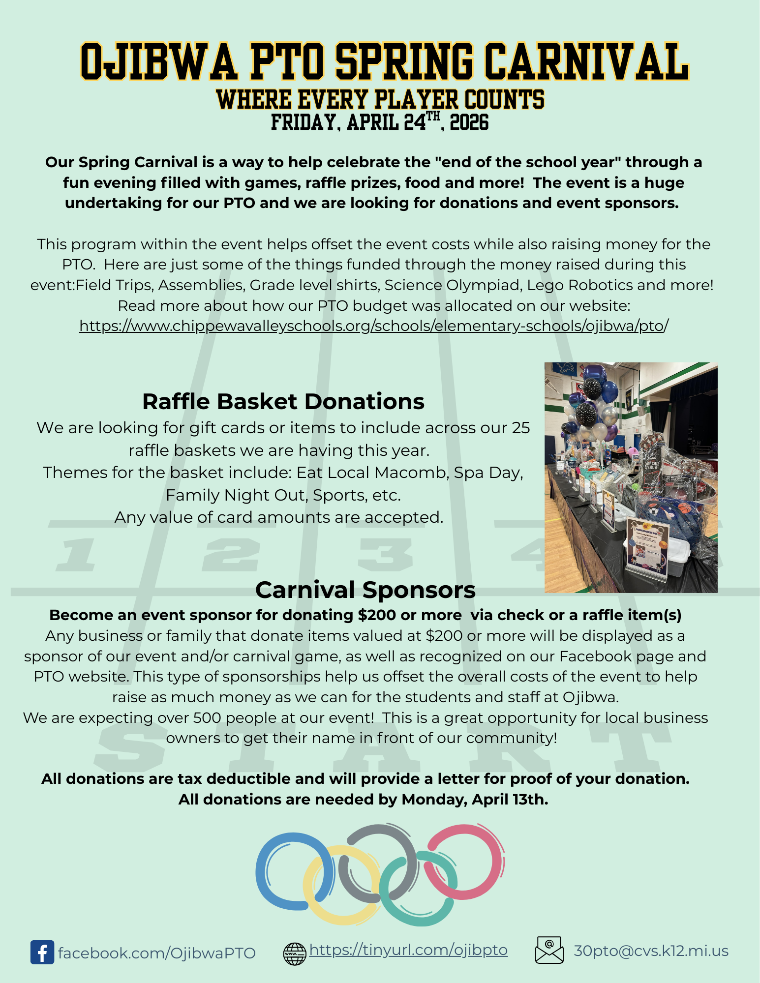 - Event Sponsors - to help offset overall event costs, we are looking for event sponsors to donate funds in exchange for extra publicity before and during our Carnival event through signage, mentions on social media and our website.